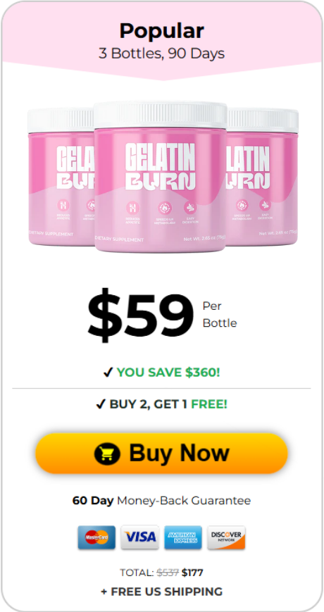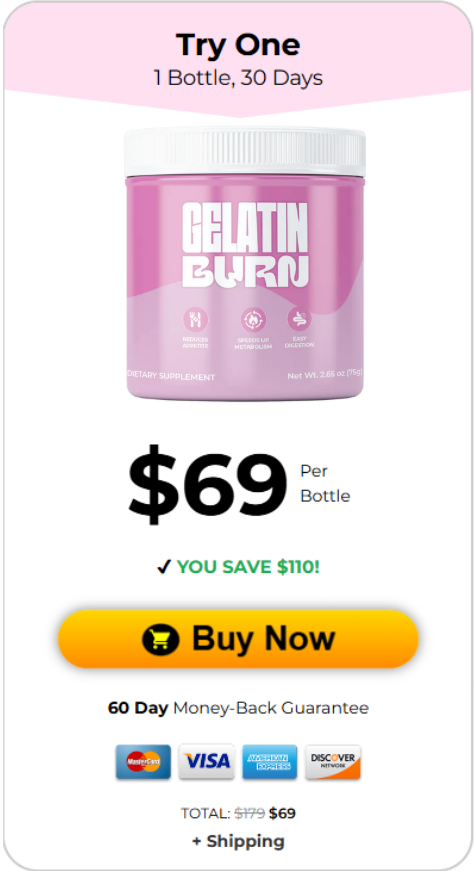 Every bottle of Gelatin Burn comes with a full 60-day money-back guarantee. You can try it, feel the difference in your energy, appetite, and waistline — with absolutely zero risk!